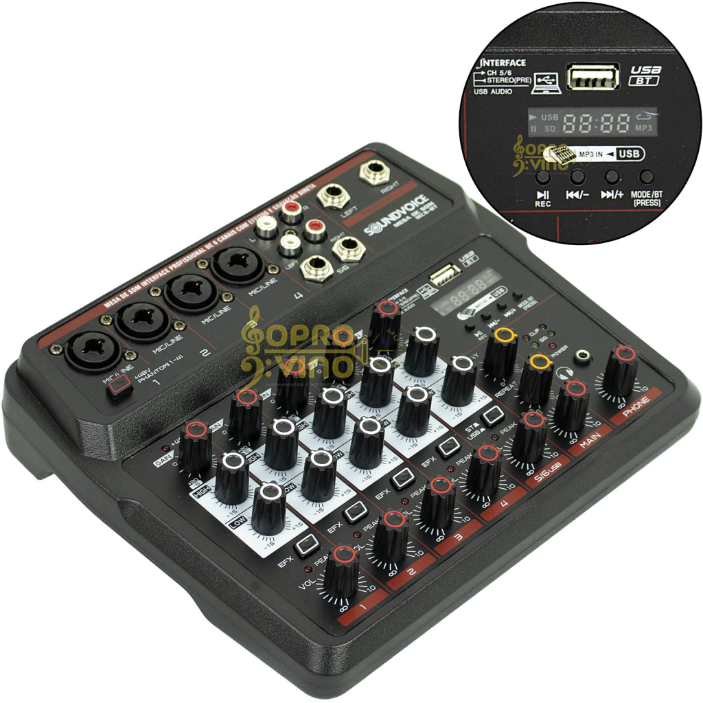A mesa de som Sound Voice MC6-BT é compacta, leve e fácil para transportar, além de ser versátil e com alta qualidade.