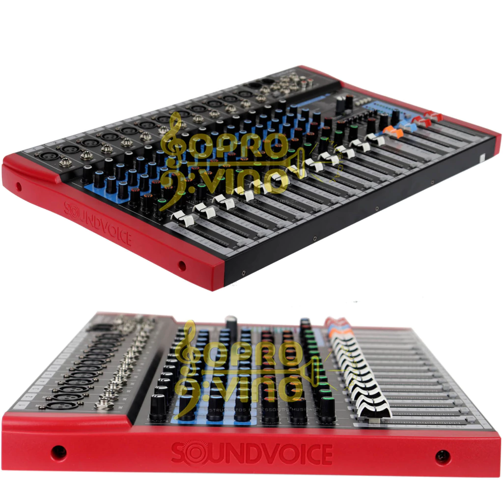 A MS122 EUX é uma mesa de som bem ampla, eficiente e versátil, robusta e resistente, pois possui a parte externa revestida em metal na cor preto e partes em ABS ( plástico ) na cor vermelho com nome gravado Soundvoice.