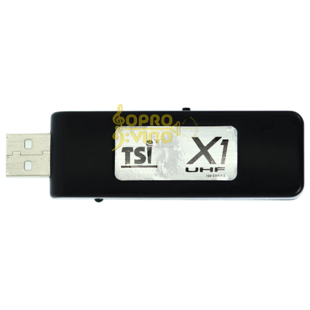 Microfone sem fio USB com 100 canais com frequência UHF, projeto desenvolvido com a mais alta e atual tecnologia, totalmente baseada em estudos profundos de teoria sobre recepção de sinais eletromagnéticos em alta frequência e antena receptora de alta performance. A linha de microfones TSI série X1 dispõe de saída P2, sensor infravermelho e conectores USB.