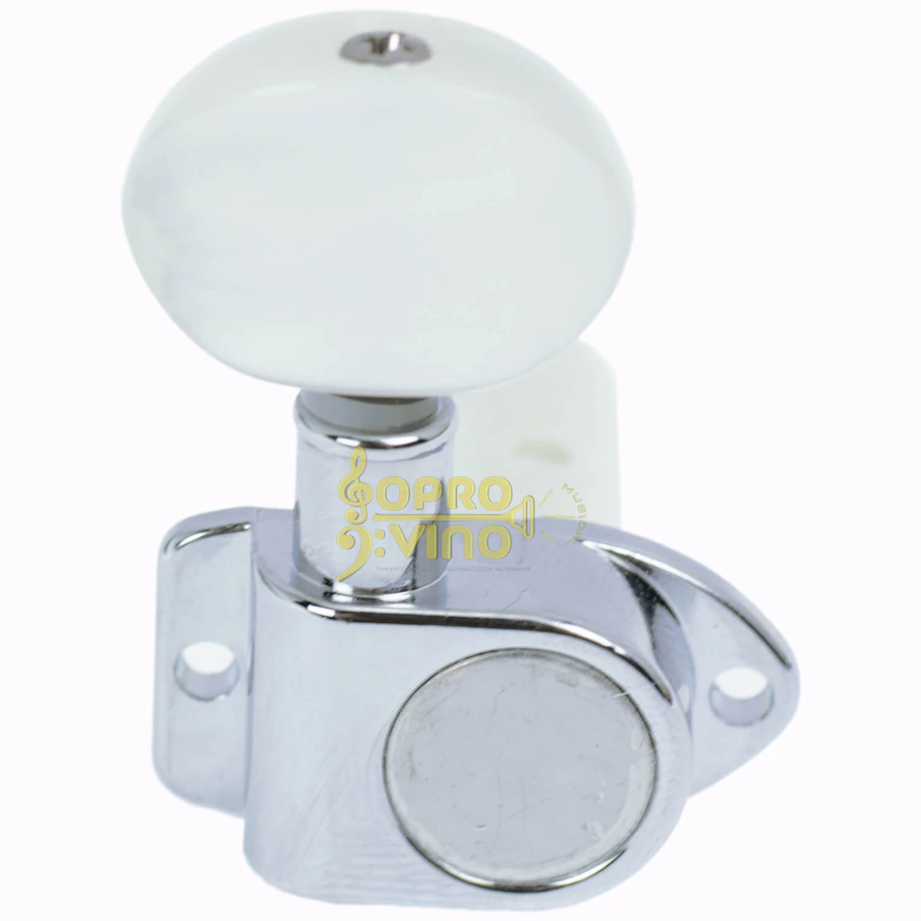 Kit com 6 tarraxas fabricadas totalmente em metal com acabamento cromado, modelo blindada com engrenagens resistentes, proporcionando fácil utilização do produto. Possui pino grosso e botões em ABS.