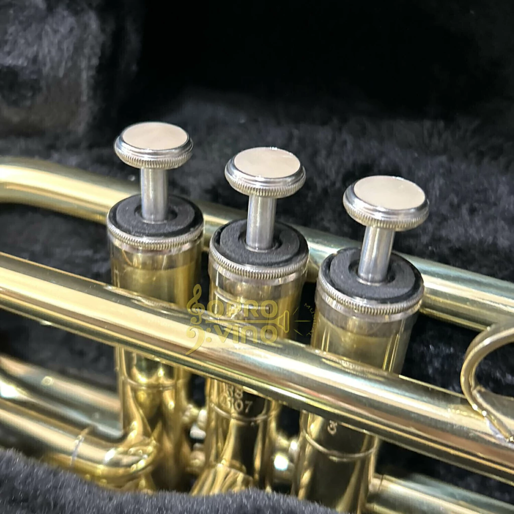 O Trombone de Pisto Curto Sebastian® modelo STB-9133G é um instrumento de sopro com construção, acabamento e sonoridade diferenciada. Instrumento fabricado com materiais de alta qualidade com metal Latão puro, não reciclado, com acabamento do corpo em Verniz Laqueado brilhante e algumas partes com acabamento Niquelado (botões e capelotes).