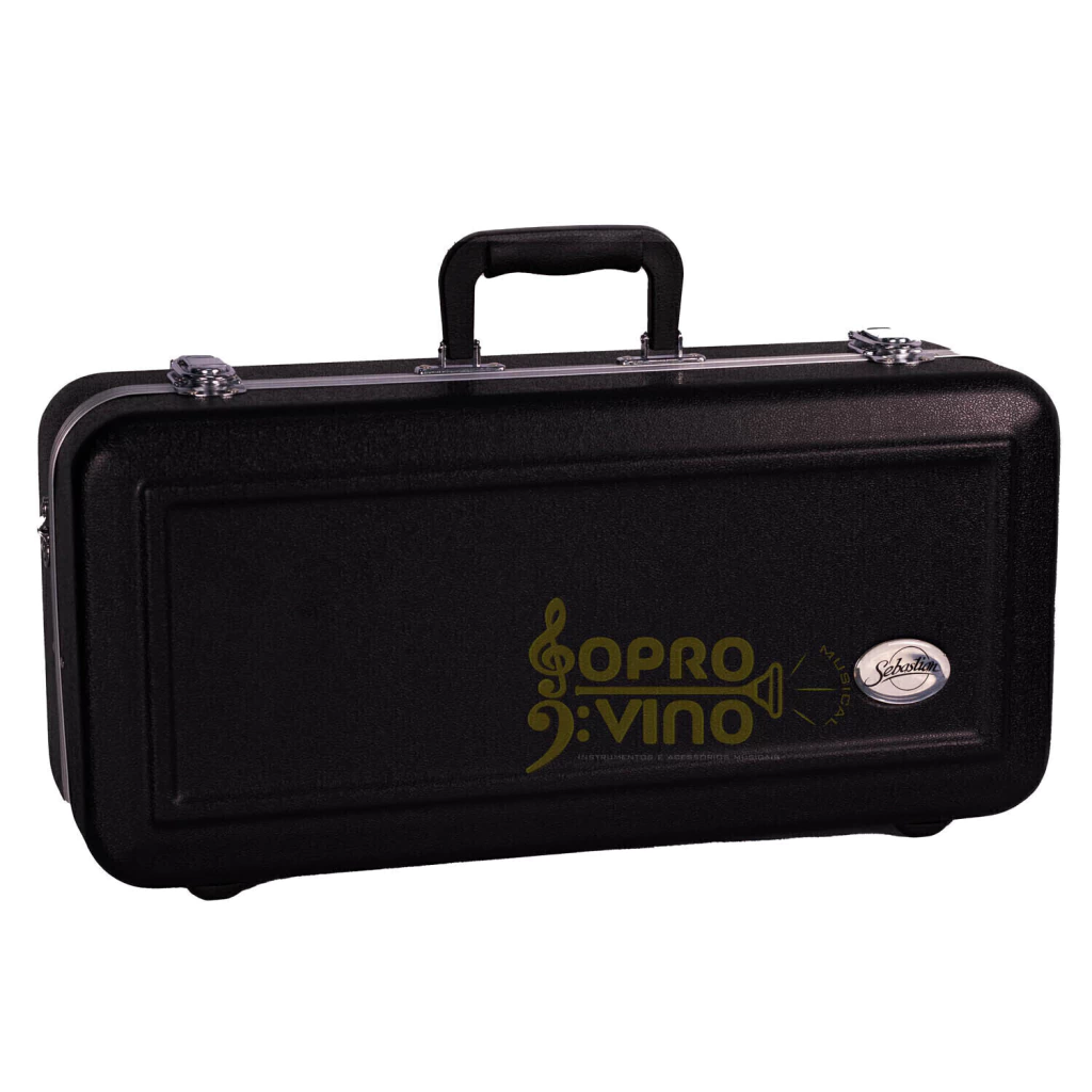Tantas qualidades citadas que o estojo não poderia ficar de fora, ou seja, mais um detalhe que a concorrência não possui. O estojo do Trompete Sebastian® é fabricado totalmente em material Plástico ABS bem grosso e rígido, ideal para proteger o instrumento.